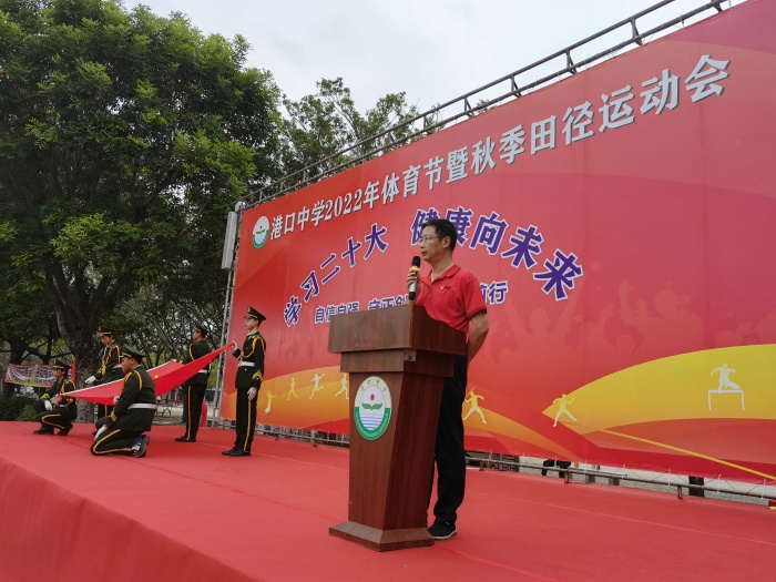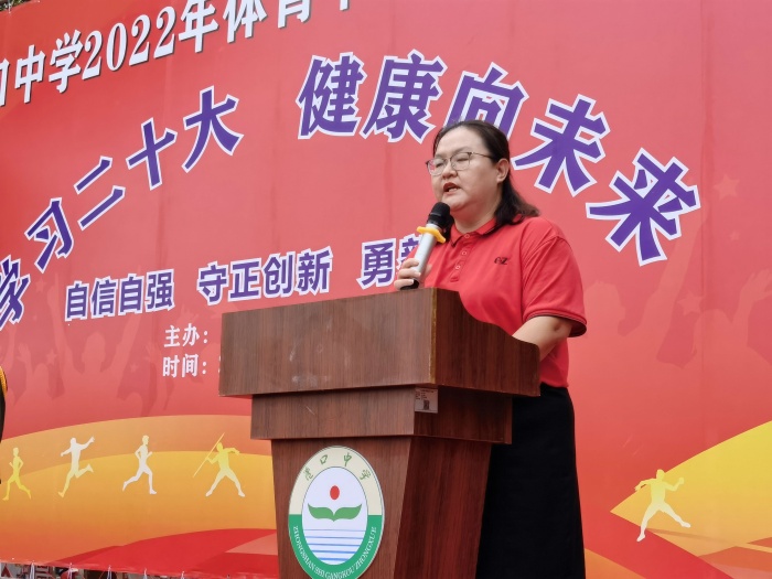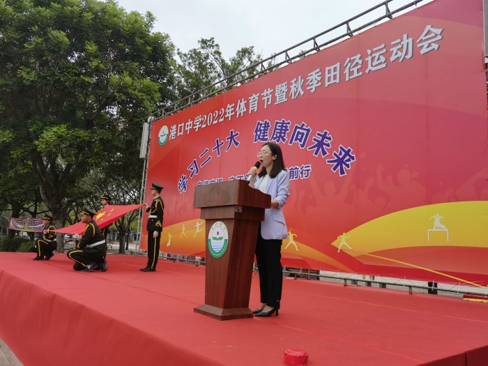 開幕式之后,港口中學(xué)副校長張麗君代表學(xué)校致開幕詞。接下來是裁判員代表楊永潮老師和運(yùn)動員代表藍(lán)海天同學(xué)宣誓,為運(yùn)動會的高效有序開展奠定了基調(diào)。最后,港口中學(xué)校長秦聲通宣布2022年港口中學(xué)體育節(jié)暨秋季田徑運(yùn)動會開幕,運(yùn)動會正式開始。