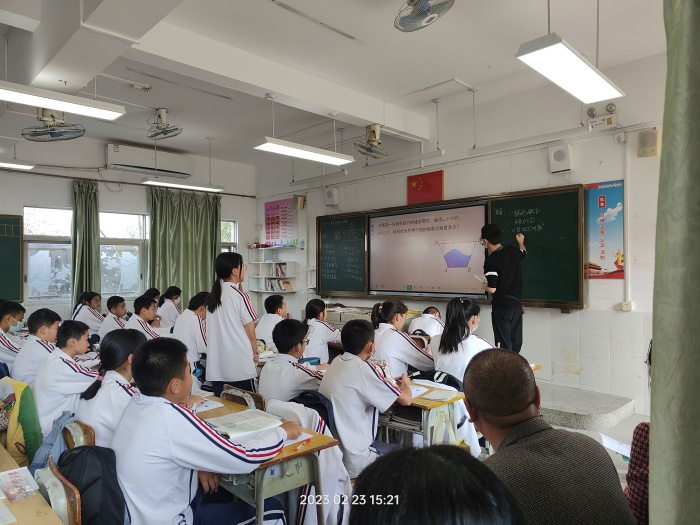 隨后,兩所中學的數(shù)學老師對郭老師的課進行議課。港口中學的梁汝英老師充分肯定了郭老師這節(jié)課。這節(jié)課教態(tài)自然,板書精美,重難點突出,循序漸進。大南中學的盧榮漢老師認為,郭俊輝老師處理課堂的方式十分成熟,教學基本功扎實,教學設(shè)計符合學生認知,通過觀察、猜想、驗證的方式進行知識的過渡,學生反饋良好。港口中學的韓旒老師認為,郭俊輝老師已經(jīng)展現(xiàn)出一名資深老師應(yīng)有的風采,臺風穩(wěn)健,課堂掌控能力強。港口中學的數(shù)學備課組長段虎林老師對郭老師的課進行了三點評價:第一,注重知識產(chǎn)生,充分體現(xiàn)了學生的主體性;第二,課堂氣氛十分活躍,多名學生積極發(fā)言,師生互動充分;第三,語言循序漸進,引導(dǎo)學生分析問題。總之,這是一節(jié)別開生面的公開課。