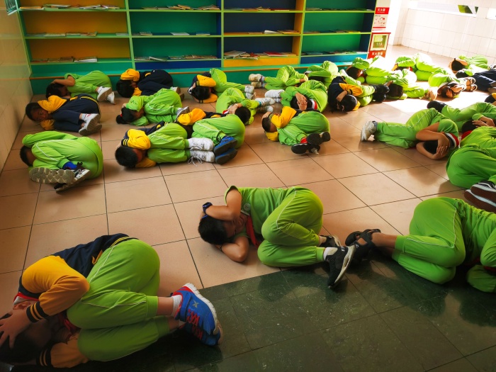演練分為三個(gè)階段:主題班會、樓梯演練和操場演練。