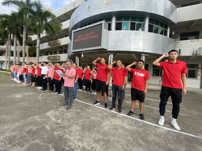 接著,吳平老師帶領(lǐng)全體教師宣誓。新的學(xué)期,海洲中學(xué)全體老師將繼續(xù)秉持立德樹人、無私奉獻(xiàn)的精神品質(zhì),為人師表、關(guān)心學(xué)生,鑄造海中更美好的明天。而后,是學(xué)生代表發(fā)言,三4班李凱琳同學(xué)代表初三學(xué)子,道出新學(xué)期的奮斗目標(biāo),激勵全體海中學(xué)子排除萬難,奮勇爭先。