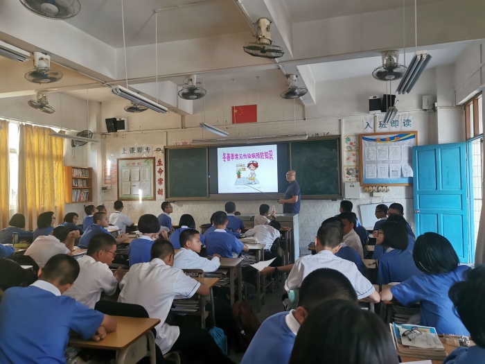下午,海洲初級(jí)中學(xué)正式開展健康教育進(jìn)校園活動(dòng),邀請(qǐng)了民樂衛(wèi)生服務(wù)站站長汪順澄醫(yī)師為學(xué)生們普及衛(wèi)生健康知識(shí)。首先,汪醫(yī)師受初二1班全體師生邀請(qǐng),在該班里給學(xué)生們講授了關(guān)于冬春季常見傳染病的預(yù)防知識(shí),主要是從傳染源、傳播途徑、易感人群及預(yù)防措施多方面給同學(xué)們介紹了流感、水痘、風(fēng)疹、流行性腮腺炎、手足口病等常見傳染病。接著,汪醫(yī)師為初一全體學(xué)生講授了如何保護(hù)視力,預(yù)防近視以及介紹青少年肥胖的危害,重點(diǎn)教育學(xué)生做好預(yù)防。從近視與肥胖的危害入手,引起學(xué)生的重視,強(qiáng)調(diào)保護(hù)視力,預(yù)防肥胖。