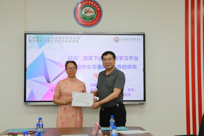 2022年6月9日下午,由賈海琳老師主持的2022年廣東省中小學(xué)教師信息技術(shù)應(yīng)用能力提升工程2.0專(zhuān)項(xiàng)科研課題《“雙減”政策下運(yùn)用智能學(xué)習(xí)平臺(tái)提高初中生英語(yǔ)閱讀素養(yǎng)的研究》開(kāi)題報(bào)告在中山紀(jì)中浪網(wǎng)中學(xué)黨建室舉行,由邱慎明副校長(zhǎng)主持,中山紀(jì)中浪網(wǎng)中學(xué)楚東升副校長(zhǎng)、馮建英主任和全體英語(yǔ)老師參加會(huì)議。