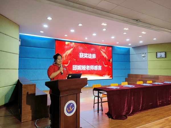 儀式伊始,由上一學(xué)年優(yōu)秀師徒盧秀芳、邱妮婭兩位老師發(fā)言,詳細(xì)講述了師徒二人在交流和相互學(xué)習(xí)過程中的所得所獲,師父的用心指導(dǎo)、傾囊相授,徒弟的虛心學(xué)習(xí)、開拓創(chuàng)新,最終達(dá)到了“師徒相長”。