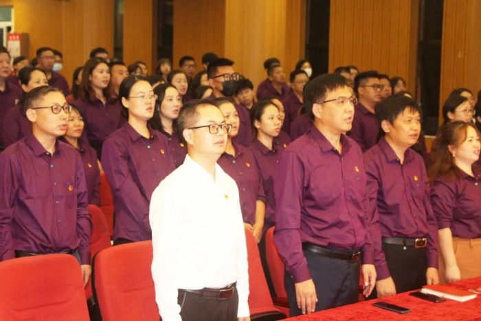 18:30,主持人仲夏同志宣布會(huì)議開(kāi)始,全體與會(huì)黨員起立,奏唱國(guó)歌。
