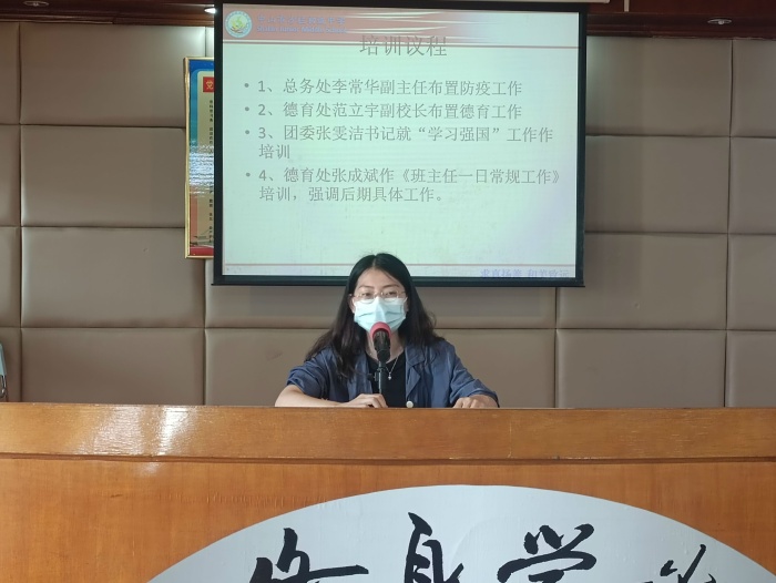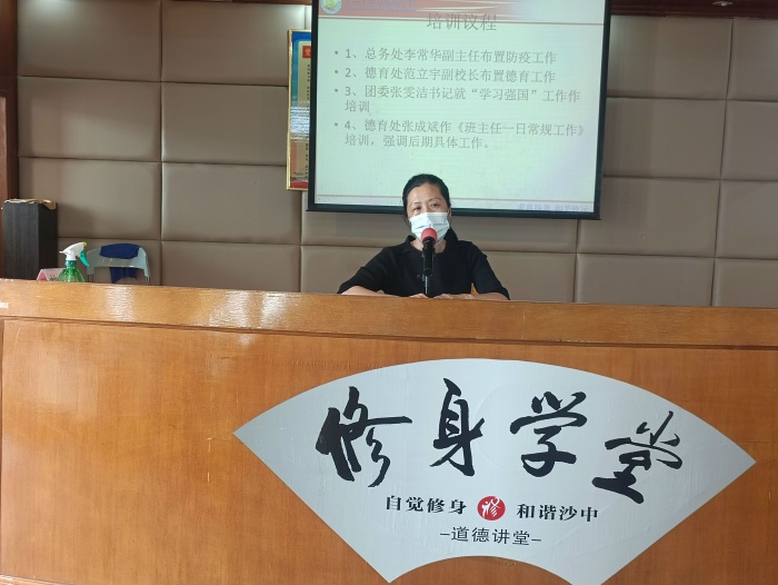 首先由李常華副主任布置防疫工作中智立方申報、學生因病缺勤、復課申請等的處理方法。范立宇副校長就輿情監(jiān)控和交通安全兩方面做了安排。學校團委書記張雯潔則對學習強國和入團申請事項進行布置。
