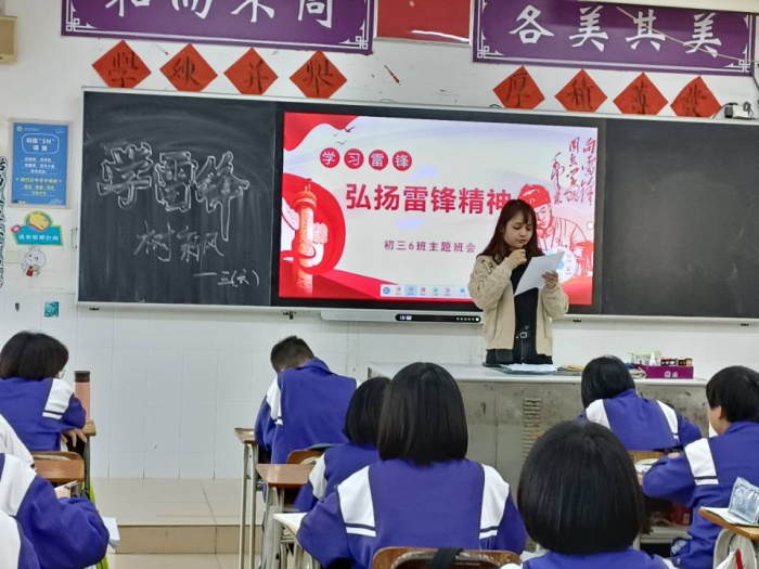 本次班會(huì)由各班班主任和班干部主持,現(xiàn)在的學(xué)生對(duì)于雷鋒的印象已經(jīng)逐漸模糊,各班從雷鋒的成長(zhǎng)歷程、生平事跡入題。老師們通過(guò)展示雷鋒部分日記,講述雷鋒助人為樂的事跡,闡述什么是雷鋒精神、雷鋒精神的時(shí)代內(nèi)涵和雷鋒精神具體內(nèi)容,總結(jié)身邊學(xué)習(xí)雷鋒做好事的例子,向?qū)W生們展示了一個(gè)學(xué)習(xí)的榜樣。學(xué)習(xí)了有關(guān)的知識(shí)后,班主任還結(jié)合班級(jí)特點(diǎn)進(jìn)行教育。最后由班主任作了總結(jié)——雷鋒是我們學(xué)習(xí)的楷模,雷鋒其實(shí)哪兒也沒去,就在我們的身邊,只要我們少一點(diǎn)私心,不斤斤計(jì)較,說(shuō)文明話、做文明事,文明知禮,“急人所想”班級(jí)一定更美好。