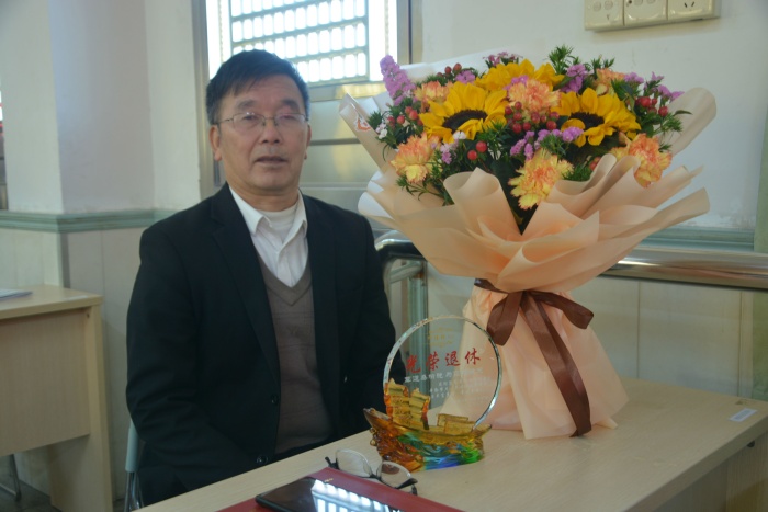 梁炳華校長(zhǎng)代表學(xué)校向榮休的何教師獻(xiàn)花,同時(shí)送上學(xué)校的紀(jì)念品,并代表全校師生發(fā)表了熱情洋溢的歡送詞,真心地感謝何老師幾十年來為學(xué)校做出的付出與貢獻(xiàn);真情地祝福他退休后盡享晚年幸福;真誠地希望他把自己寶貴的教育教學(xué)經(jīng)驗(yàn)和對(duì)學(xué)校發(fā)展的建設(shè)性意見留下來,也請(qǐng)他常回家看看。