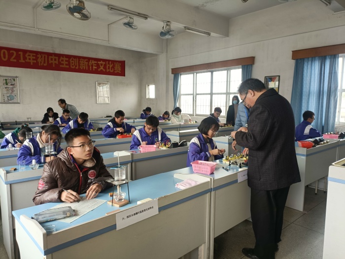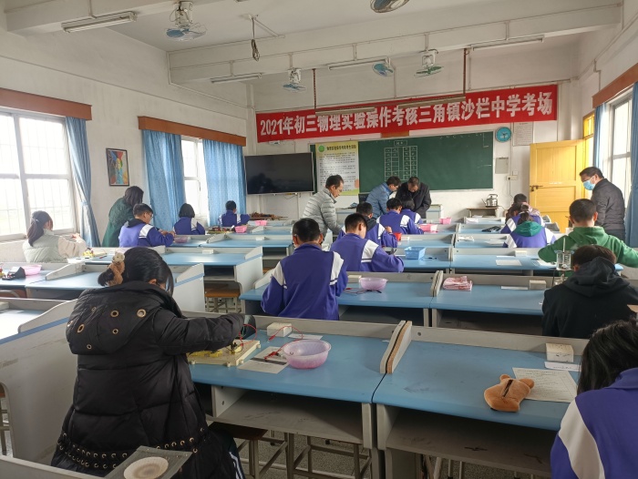 當(dāng)天實驗考核,三角鎮(zhèn)兼職物理教研員史漢軍到場指導(dǎo)考核工作的開展。對于本次實驗操作考核,沙欄中學(xué)的領(lǐng)導(dǎo)也高度重視,為確??己斯ぷ黜樌M(jìn)行,在教導(dǎo)處的指引下,物理科組長龍老師帶領(lǐng)初三物理老師和實驗員提前部署各項工作,安排專課專講專練,確保每位學(xué)生都有足夠的訓(xùn)練時間。物理科組的全體老師發(fā)揚了“和舟共濟”的團隊協(xié)作精神,全程參加實驗考核的監(jiān)考評分工作。