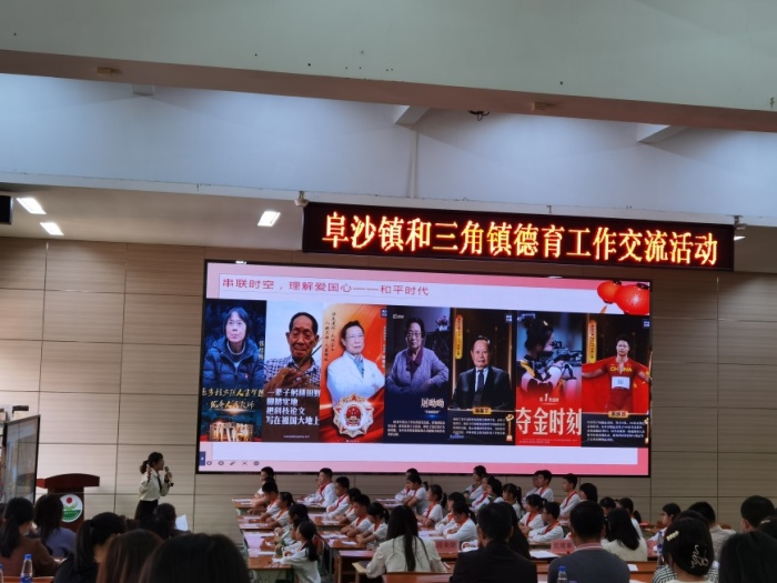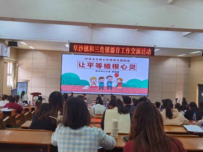 為充分發(fā)揮主題班會課的育人作用,提高班主任的工作水平和綜合素養(yǎng),交流和探討“三全育人”以及家庭教育工作經(jīng)驗,進一步探索班主任育人新途徑、新方法,增進兩鎮(zhèn)德育隊伍和班主任工作室之間的交流溝通,3月7日下午,阜沙鎮(zhèn)與三角鎮(zhèn)教體中心聯(lián)合舉辦的“攜手共成長,一起向未來”德育工作交流活動在三角鎮(zhèn)中心小學階梯室隆重舉行。沙欄中學派出了優(yōu)秀班主任團隊參與了此次交流活動。