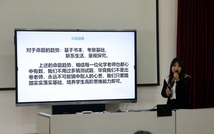 再次,小欖鎮(zhèn)中學(xué)化學(xué)教研中心組組長(zhǎng)黃瑞芳老師作了《新形勢(shì)下提升學(xué)科備考能力的策略》的講座。黃老師主要從中考新形勢(shì)分析和中考備考策略兩大角度展開(kāi)研討,娓娓道來(lái),彰顯永寧中學(xué)化學(xué)學(xué)科備考特色,內(nèi)容詳細(xì),針對(duì)性強(qiáng),實(shí)例展示,全盤(pán)分享,給今年化學(xué)科中考備考工作提供了借鑒的思路和方向,贏得在場(chǎng)眾多老師的贊賞和認(rèn)可。