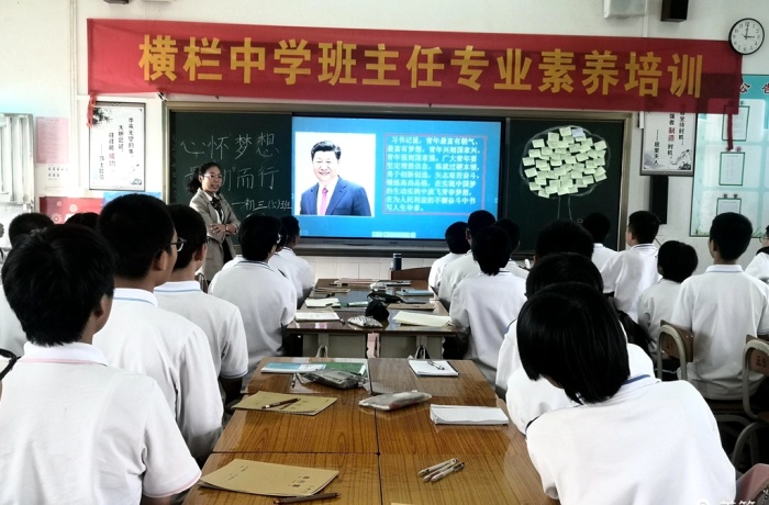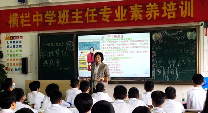 當(dāng)天下午,永寧中學(xué)全體班主任分年級進(jìn)班觀摩了橫欄中學(xué)舉辦的班主任專業(yè)素養(yǎng)培訓(xùn)的主題班會,分別有初一(16)班《我和班級共成長》、初二(19)班《靜待花開》、初三(5)班《理想前途教育》的主題班會活動,主題班會是根據(jù)三個(gè)年級學(xué)生的不同特點(diǎn)而開展的,三節(jié)班會課以“三邁”行動為主線,以“體驗(yàn)”教育為抓手,向觀摩老師展示了該校初一級邁好中學(xué)第一步、初二級邁好青春第一步、初三級邁好理想第一步的“三邁行動”德育體系。內(nèi)容非常符合學(xué)生的年齡特點(diǎn),針對性強(qiáng),切合實(shí)際,形式多樣,學(xué)生積極參與體驗(yàn)和分享,觸動學(xué)生心靈,教育效果非常好,也體現(xiàn)了上課班主任扎實(shí)的專業(yè)素養(yǎng)和高超的育人能力,為永寧中學(xué)班主任進(jìn)行主題德育教育活動提供了示范,課堂上學(xué)生有禮、自信、大方的表現(xiàn),給老師們留下了深刻的印象。