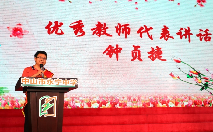 活動(dòng)最后,由優(yōu)秀教師代表鐘貞捷老師講話。他表示:將繼續(xù)努力把自己練就成一名好老師,擔(dān)當(dāng)起黨賦予的“讓每個(gè)孩子健康成長(zhǎng)、辦好人民滿意的教育”的重任。