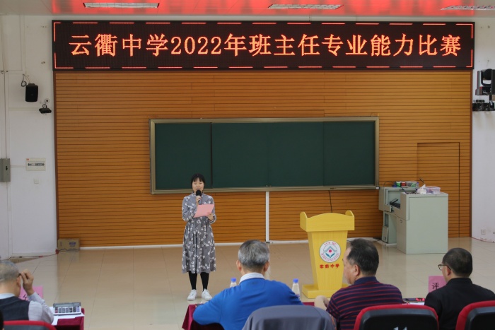本次班主任專業(yè)技能比賽,由大隊副輔導(dǎo)員程利婷擔(dān)任主持人。參賽者為校內(nèi)45歲以下的班主任共38位,分別來自云衢中學(xué)初一、初二、初三不同年級。云衢中學(xué)校長彭柳芳蒞臨指導(dǎo)。擔(dān)任大賽評委的領(lǐng)導(dǎo)有德育副校長劉毛古,德育處主任伍凌峰,德育處副主任謝偉、莫景超、崔麗燕。