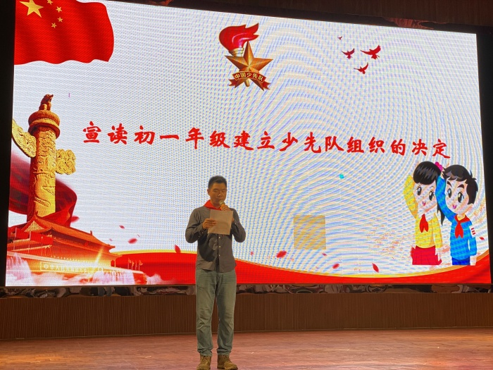 活動在奏唱國歌、出隊旗和唱隊歌中拉開序幕。首先,該校少先隊大隊輔導(dǎo)員楊勇宣讀了《初一年級建立少先隊組織的決定》, 并勉勵各中隊在大隊委的帶領(lǐng)下,積極開展豐富多彩的少先隊活動,使該校少先隊工作開創(chuàng)新局面;
