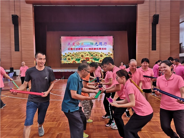 活動(dòng)的第三環(huán)節(jié),由工會(huì)和心理組開展教師團(tuán)康活動(dòng)。教職工積極參與“拍拍操”“珠行萬里”“搭橋過河”等趣味活動(dòng),齊心協(xié)力完成挑戰(zhàn)?;顒?dòng)不僅使教職工放松了心情,豐富了業(yè)余生活,同時(shí)也增進(jìn)了同事之間的感情,舒緩了緊張的工作壓力。