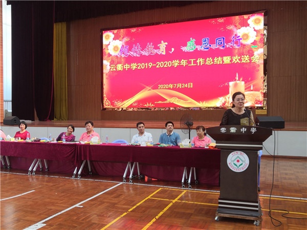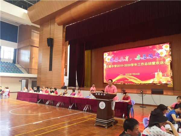 為總結(jié)本學(xué)年學(xué)校教育教學(xué)工作,提升教職工團(tuán)隊(duì)的幸福感和凝聚力,7月24日下午,云衢中學(xué)全體教職工集中藝體中心,舉行2019-2020學(xué)年工作總結(jié)暨歡送會(huì)及教職工團(tuán)康活動(dòng),活動(dòng)由盧均源主任和崔麗燕老師主持。