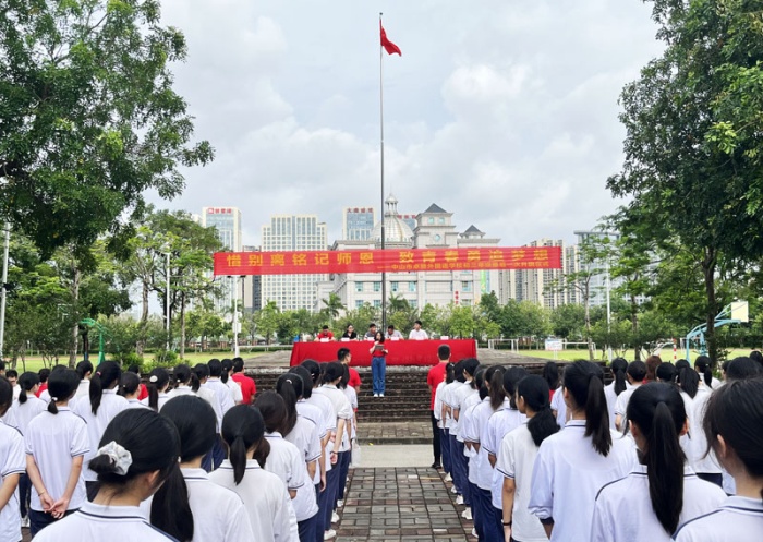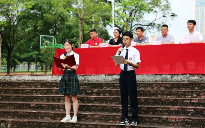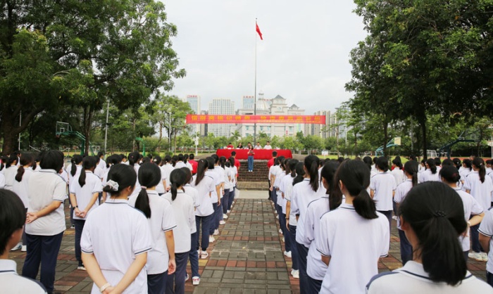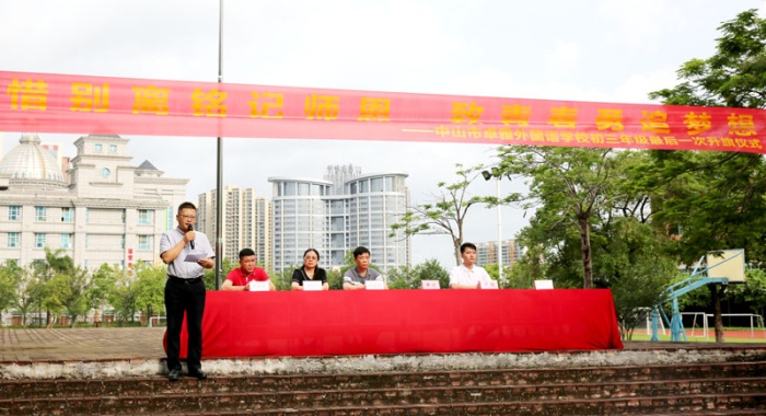 卓雅外校校長(zhǎng)李雄杰、副校長(zhǎng)兼初中部校長(zhǎng)李文、初中部副校長(zhǎng)韓瑞云、藝體中心主任方學(xué)軍、初中部學(xué)生處主任鄒旭、團(tuán)委書記李凌霄及初中部全體師生參加升旗儀式。