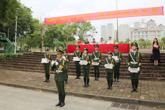儀式還表彰了成功完成升旗任務(wù)的11名九年級(jí)校國(guó)旗隊(duì)隊(duì)員,校長(zhǎng)李雄杰為同學(xué)們頒發(fā)榮譽(yù)證書,為圓滿完成國(guó)旗隊(duì)訓(xùn)練任務(wù)的許光輝安全主管頒發(fā)榮譽(yù)證書,向他們的辛苦付出表示感謝。