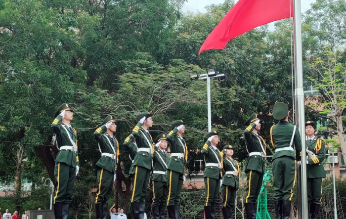 伴隨著清晨的第一縷陽光,升旗儀式正式開始,卓雅外校國(guó)旗隊(duì)11名隊(duì)員步伐慷鏘,在雄壯的《義勇軍進(jìn)行曲》中,鮮艷的五星紅旗冉冉升起。