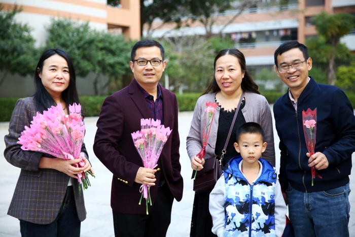 “節(jié)日快樂?!薄白D闾焯扉_心,健康幸?!痹缟掀唿c,卓雅外校副校長李文、畢文龍、李園萍及工會委員們已等候在學(xué)校門口,他們手捧鮮花、面帶微笑,向一早來上班的女教職員工送上節(jié)日的祝福。各工會小組則利用課間時間,向辛勤工作的女教職員工等送上鮮花、蛋糕、購物卡等節(jié)日禮物,并在精心布置的“節(jié)日拱門”前合影留念。