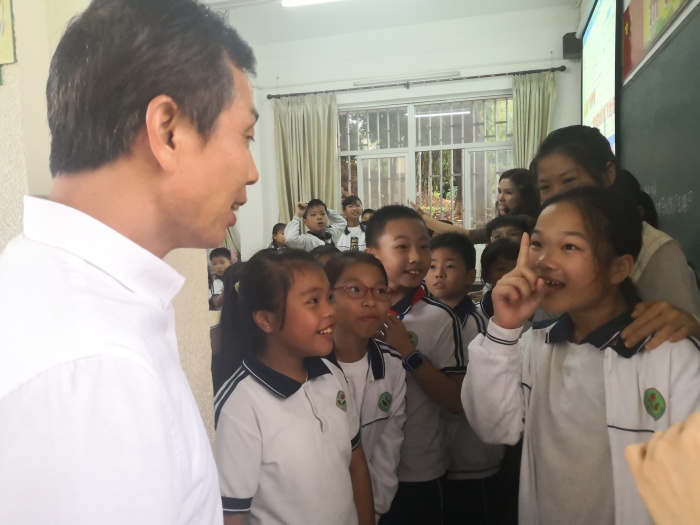 隨后,雨勢漸小,中山特校湯校長一行在林偉源副校長等人的陪同下,前往支教教師所在的汫洲鎮(zhèn)中心小學本部參觀,聽取林偉源副校長介紹學校的建設和發(fā)展情況,交流校園文化創(chuàng)建心得等,并前往支教老師所在的404班看望學生們。感受到學生與支教教師濃濃的師生情誼,湯校長很是欣慰,勉勵成海麗老師要繼續(xù)開展愛的教育,做好愛的傳遞者,做學生喜愛的老師,做孩子成長之路上的貴人,讓他們親其師、信其道,樹立高遠的人生理想。