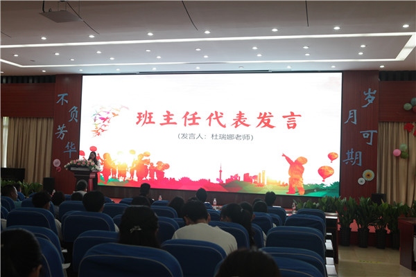 杜瑞娜老師代表畢業(yè)班班主任發(fā)言,引用電影《致我們終將逝去的青春》中的精彩獨白,分享了同學(xué)們在校園里促膝談心,運動場上頑強拼搏,考證前全力沖刺等等往事,希望同學(xué)們志存高遠,追求卓越,做追夢人、做挑戰(zhàn)者!