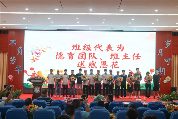 班級代表為德育團隊、班主任送感恩花,并舉行了畢業(yè)捐款捐贈儀式。校領(lǐng)導(dǎo)為優(yōu)秀畢業(yè)生頒獎,校領(lǐng)導(dǎo)為2017級同學(xué)頒發(fā)畢業(yè)證。同學(xué)們手拿畢業(yè)證和校長、班主任、任課老師合影留念,定格人生這一幸福時刻,把青春最美的微笑留在了一職畢業(yè)典禮舞臺上。