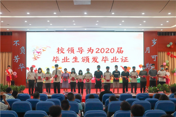 龍衛(wèi)平校長做了《珍惜韶華,不負青春》的畢業(yè)致辭,深情回顧了同學(xué)們在一職校生活、學(xué)習(xí)的點點滴滴,點贊同學(xué)們在多姿多彩的一職校里獲取了知識、錘煉了品格、增長了能力、提高了素質(zhì),實現(xiàn)了人生的轉(zhuǎn)變,多項賽事實現(xiàn)了零的突破,為學(xué)校爭得了榮譽!他通過列舉黨和國家扎實開展的新冠肺炎疫情防控工作、同學(xué)們積極投身各種防疫工作體現(xiàn)的責(zé)任擔(dān)當(dāng)?shù)葘嵗?,告誡同學(xué)們在大事難事面前要更加懂得自律,在逆境困境面前要更加懂得自強,在危機危難面前要更加懂得自育。他希望同學(xué)們要時刻牢記“艱苦奮斗,自強不息”的校訓(xùn)精神,要擁有感恩之心、要愛黨愛國、愛校愛家、愛師愛友,做有志向的國家青年;要擁有夢想,要自尊自律、自勉自強、自省自育。