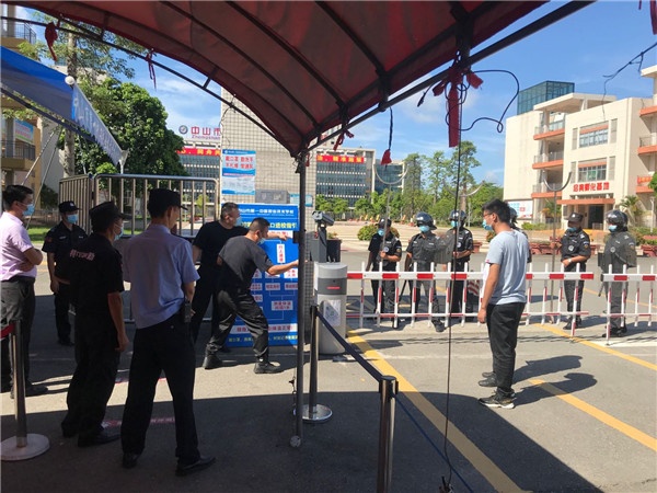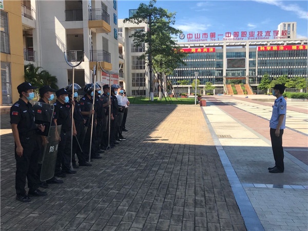 為了使保安人員熟練掌握安保器械,提高應(yīng)對突發(fā)事件的應(yīng)急處置能力,6月11日上午,中山一職開展校門安保突發(fā)事件應(yīng)急處置演練。馮華彬副校長、學(xué)生處劉基主任和蔡權(quán)副主任、物業(yè)公司梁啟文經(jīng)理及全體保安員參加了演練活動,學(xué)校駐校民警羅承志警官到現(xiàn)場進行演練培訓(xùn)指導(dǎo)。