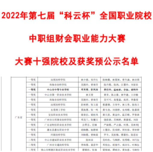 為進一步提升會計人才質(zhì)量,提高學(xué)生的實踐能力、就業(yè)能力和創(chuàng)新能力,適應(yīng)大智移云技術(shù)在財務(wù)領(lǐng)域的快速應(yīng)用,由中國商業(yè)會計學(xué)會主辦、廈門科云信息科技有限公司承辦的2022年“科云杯”全國職業(yè)院校中職組財會職業(yè)能力大賽于2022年5月21日成功舉辦。自開賽以來,經(jīng)過校內(nèi)賽的激烈選拔,全國超兩百所學(xué)校、362支隊伍報名參賽。由現(xiàn)代服務(wù)業(yè)部鄧芙蓉、彭鳳瓊兩位老師指導(dǎo)的代表隊在全國370支隊伍中榮獲一等獎的好成績。