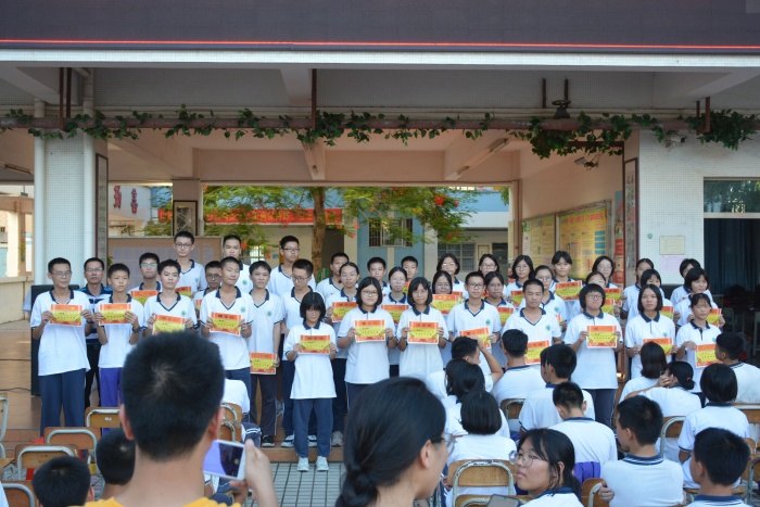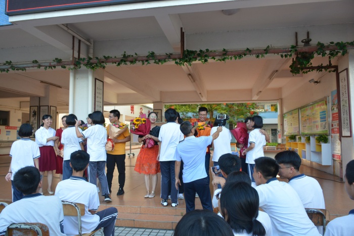 學(xué)生代表將一束束鮮花送到老師們手上。接著,楊級(jí)長(zhǎng)宣讀獲得2020屆優(yōu)秀畢業(yè)生稱號(hào)的學(xué)生名單,號(hào)召全體學(xué)生向他們學(xué)習(xí)。校長(zhǎng)梁炳華為優(yōu)秀畢業(yè)生頒發(fā)了獎(jiǎng)狀。