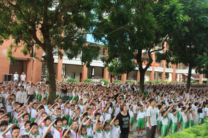 活動(dòng)開始之際,學(xué)校舉行了莊嚴(yán)的升旗儀式。老師和同學(xué)們?nèi)w肅立,向國旗致敬,同學(xué)們的愛國之情油然而生。
