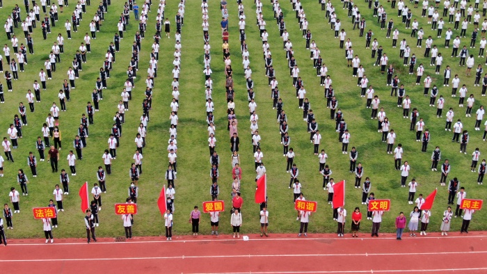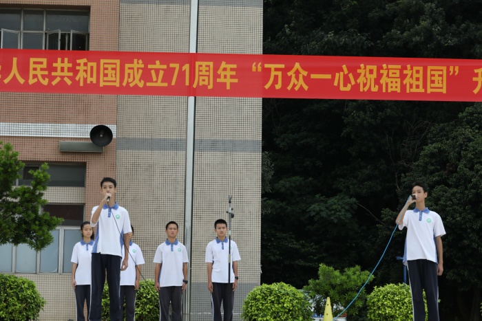 為熱烈慶祝中華人民共和國(guó)成立71周年,強(qiáng)化愛國(guó)意識(shí),認(rèn)清職責(zé)使命,弘揚(yáng)偉大中華民族精神,踐行社會(huì)主義核心價(jià)值觀,三角中學(xué)全校師生共同進(jìn)行“萬眾一心·祝福祖國(guó)”大型升旗儀式活動(dòng)!