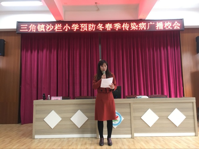 近期,為進(jìn)一步做好學(xué)校冬春季傳染病防控工作,增強(qiáng)學(xué)生的自我防范意識(shí)以及提高對(duì)冬春季傳染病知識(shí)的知曉率。三角鎮(zhèn)沙欄小學(xué)于12月24日上午8:00,召開(kāi)了冬春季傳染病防治健康教育會(huì)議。本次會(huì)議由沙欄小學(xué)崔煥英校長(zhǎng)主講。