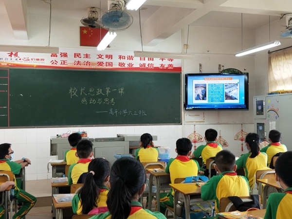 新冠肺炎疫情牽動全國人心,在抗疫艱辛歷程中涌現(xiàn)的感人事跡更是溫暖了整個寒冬。5月18日,高平小學(xué)終于迎來了首批返校學(xué)子,四到六年級的學(xué)生正式復(fù)課。為上好思政課,當(dāng)好引路人,高平小學(xué)莫文杰校長以戰(zhàn)“疫”作教材,以思政為主題,給返校學(xué)子講授了以“感動與思考”為題的校長思政課。