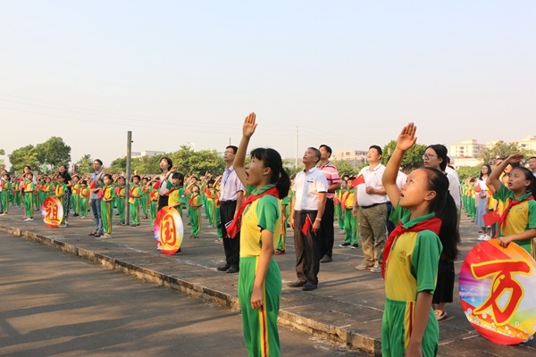 然后由莫文杰校長致辭,莫校長勉勵(lì)同學(xué)們一定要牢記國家主席習(xí)爺爺?shù)膰谕?,用心學(xué)習(xí)和踐行24字社會(huì)主義核心價(jià)值觀,胸懷祖國,勤奮學(xué)習(xí),努力掌握現(xiàn)代科學(xué)技術(shù),爭做有理想,有道德,有文化,有紀(jì)律的四有新人,爭做新時(shí)代的好少年,一定要繼承和發(fā)揚(yáng)自強(qiáng)不息的民族精神,奮力拼搏,力爭用自己的激情、汗水和辛勞,把偉大的祖國建設(shè)得更加美好!衷心祝愿我們的祖國更加繁榮昌盛,祝愿全國人民永遠(yuǎn)幸福安康!
