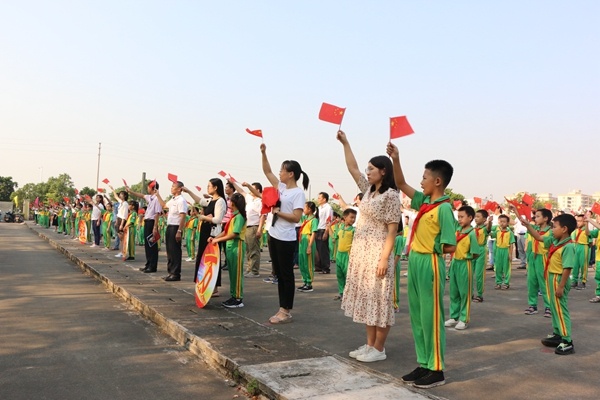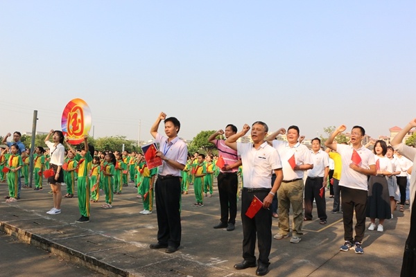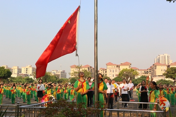 隨后,全體師生懷著無比激動(dòng)澎湃的心情,高聲齊唱一曲《歌唱祖國》,大家伴著旋律搖動(dòng)手中的小國旗,深情唱出了對(duì)祖國的熱愛與眷戀,唱出了廣大學(xué)子濃濃的中華情。最后,莫校長帶領(lǐng)全體師生懷著真摯而又自豪的心情呼號(hào):“祖國萬歲!祖國萬歲!” 將現(xiàn)場的愛國情感推向高潮。