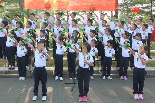 接著,由一(1)班的小同學(xué)帶來朗誦《大?!罚磉_(dá)了莘莘學(xué)子真切的愛國心;五(1)班同學(xué)帶來合唱歌曲《雨花石》,同學(xué)們個(gè)個(gè)聲情并茂,動(dòng)聽悠揚(yáng)的旋律配上輕快的動(dòng)作,余音繞梁、歌聲回蕩,唱出了對(duì)祖國母親最誠摯的祝福。