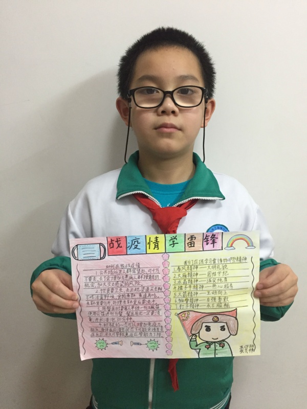 通過本次主題活動讓同學們受到了一場靈魂的洗禮,受到了教益和感染,很多孩子紛紛以自己的方式,通過繪畫、朗誦、講故事、寫信等,詮釋了自己心中的雷鋒精神,用自己擅長的方式為奮戰(zhàn)在一線的叔叔阿姨加油鼓勁,用稚嫩的童聲表達對他們的感謝和敬意,“雷鋒精神”已成為一顆種子在孩子們幼小的心靈生根發(fā)芽。