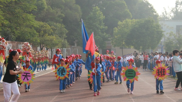 2019年11月15日,三角小學(xué)舉辦了2019年田徑運動會。上午8時許,伴隨著激昂的《運動員進(jìn)行曲》的節(jié)拍,朝氣蓬勃的護(hù)旗手,護(hù)擁著鮮艷的五星紅旗昂首邁過主席臺。隨后,各年級方陣排列著整齊的隊伍依次入場,盡情展示小學(xué)生朝氣蓬勃、奮發(fā)向上的精神風(fēng)貌。學(xué)生們穿著統(tǒng)一的服裝,排著整齊的隊伍,喊著響亮的口號,依次有序地走過主席臺,充分展現(xiàn)了三角小學(xué)師生的蓬勃朝氣和青春活力。在王輝副校長激情洋溢的講話后,運動會正式拉開了序幕。