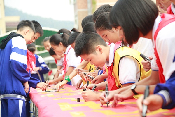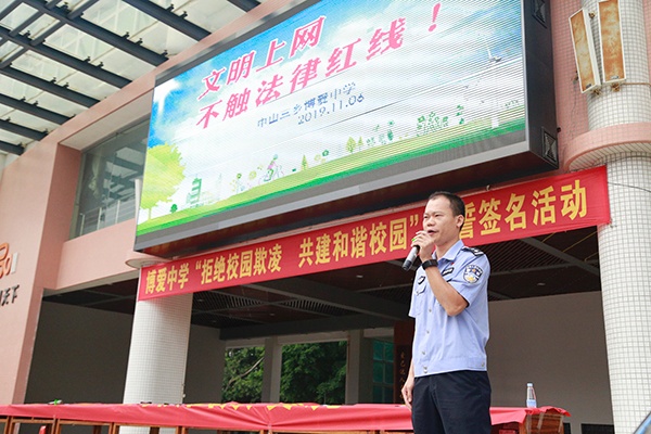 2019年11月11日,中山市博愛初級中學(xué)舉辦了以“拒絕校園欺凌,共建和諧校園”為主題的全體師生簽名活動(dòng)。此活動(dòng)意在加強(qiáng)學(xué)生的法制意識,防止校園欺凌事件的發(fā)生,營造平安、和諧的校園氛圍。
