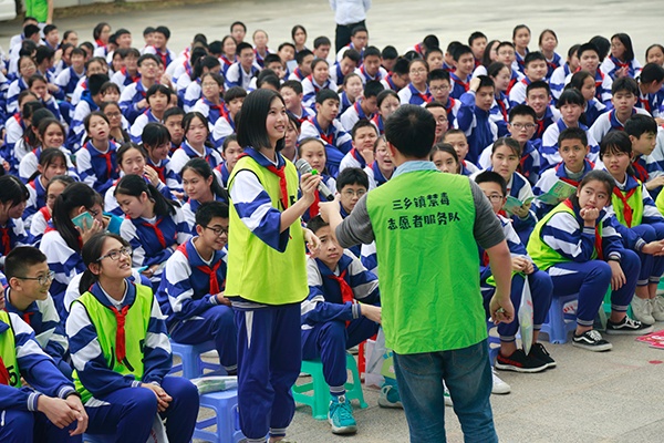 為進(jìn)一步加強(qiáng)學(xué)生毒品預(yù)防宣傳教育,提升在校學(xué)生識(shí)毒防毒拒毒的能力,學(xué)校開展多渠道,多方位,全面的教育形式,在3月26日下午第三節(jié),博愛中學(xué)請(qǐng)來了三鄉(xiāng)鎮(zhèn)禁毒辦志愿者,在學(xué)校廣場(chǎng)對(duì)初二級(jí)全體學(xué)生進(jìn)行了禁毒宣傳教育活動(dòng)。