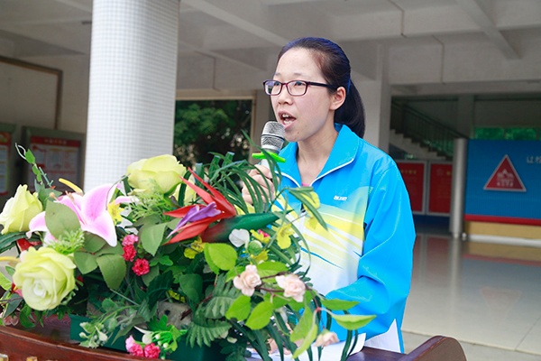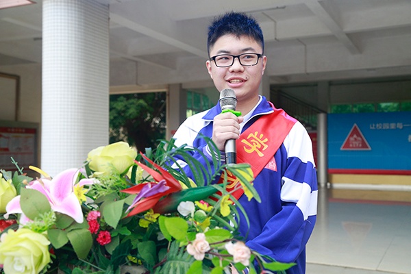 接著,是三(9)班學生代表張智林發(fā)言:“良好的開端是成功的一半”,從現(xiàn)在開始做最好的自己。播下一個信念,將會收獲一種行為;播下一種行為,將會收獲一種習慣;播下一個習慣,將會在未來收獲一種成功!第五項是全體學生在二(5)班梁靜怡的帶領下集體宣誓:認真學習,嚴守紀律,做博愛中學的好學生。