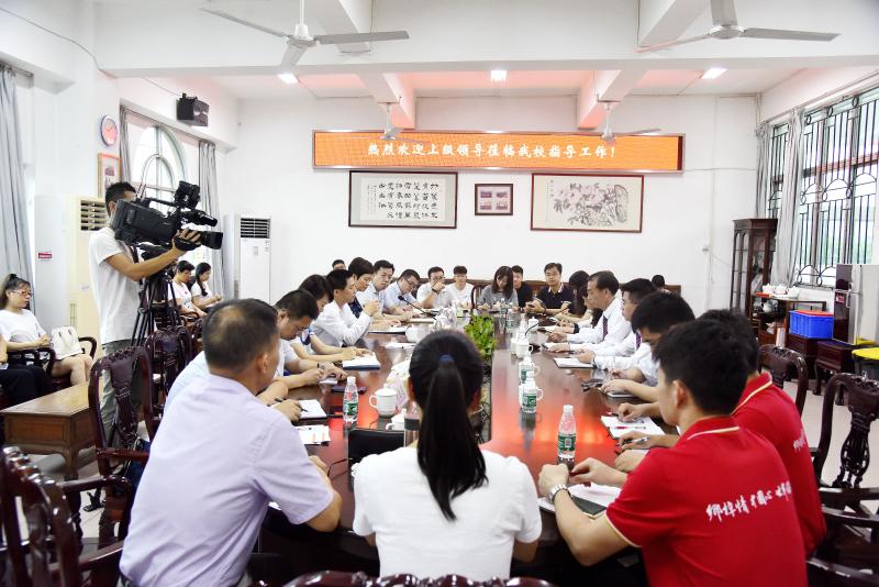 7月10日上午,順德區(qū)委副書記、區(qū)長彭聰恩同志偕同區(qū)政府相關(guān)部門負責(zé)同志蒞臨華僑中學(xué)調(diào)研指導(dǎo)工作。區(qū)委區(qū)政府辦公室副主任曾帆、鐘德慰,區(qū)教育局局長閔樂萍,區(qū)財政局局長黎勁康,區(qū)國有資產(chǎn)監(jiān)督管理局局長寧磊等同志陪同調(diào)研。
