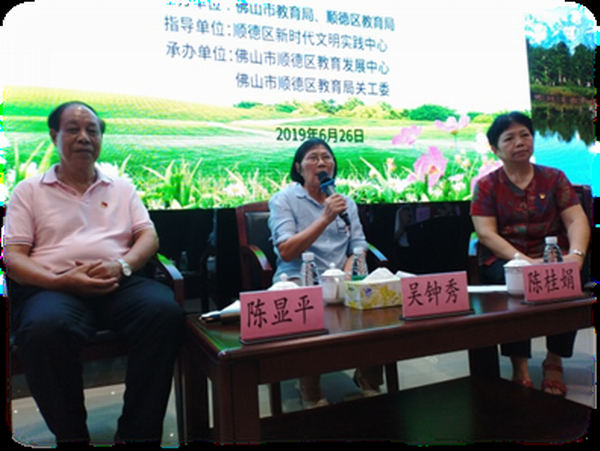 培訓(xùn)的第一個(gè)環(huán)節(jié)是“不忘初心,牢記使命”――先進(jìn)關(guān)工委工作心路歷程分享。培訓(xùn)別開生面,用“微論壇”形式進(jìn)行。市教育局常務(wù)副主任吳鐘秀、禪城區(qū)教育局關(guān)工委主任陳桂娟和三水區(qū)教育局關(guān)工委主任陳顯平三人參與了微論壇。首先吳主任對佛山的創(chuàng)建規(guī)范化學(xué)校的工作受到國家領(lǐng)導(dǎo)人顧秀蓮的肯定進(jìn)行匯報(bào)。接著陳顯平陳桂娟兩位主任分別分享了他們堅(jiān)持做關(guān)心下一代工作的心路歷程。兩位主任都是從教育崗位上退休的,本著教育情懷,感恩黨的培養(yǎng),不忘初心,牢記使命,責(zé)任擔(dān)當(dāng),退而不休,發(fā)揮余熱堅(jiān)持做關(guān)工委工作十多年。在十多年的關(guān)工委工作中,他們克服身體的困難、家庭的困難,處理好照顧家人與關(guān)工委工作的矛盾,工作有計(jì)劃有方法效果好,受到了領(lǐng)導(dǎo)老師家長學(xué)生的一致好評。在兩位主任分享過程中,因?yàn)槭论E感人多次收獲了與會(huì)人員熱烈的掌聲。