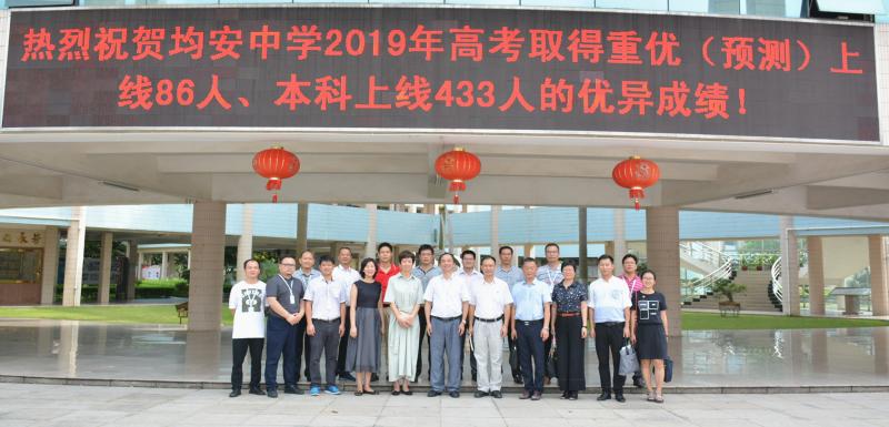 順德區(qū)教育局閔樂萍局長、均安鎮(zhèn)教育局勞國明局長、順德一中交流團(tuán)隊(duì)與均中行政隊(duì)伍合影