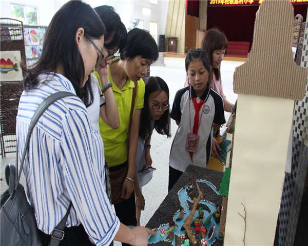 活動在倫教街道小學(xué)美術(shù)中心教研組組長鄺寶均老師主持下,首先參觀了“荔村小學(xué)美術(shù)特色作業(yè)展示”,到會的老師們在學(xué)生的引領(lǐng)和講解下在禮堂進(jìn)行觀展。此次展出的美術(shù)特色作業(yè)內(nèi)容豐富多彩,形式多種多樣。有裝飾味道強(qiáng)的重彩畫,有別具匠心的拼貼畫,有活靈活現(xiàn)的手工紙花,有書寫端正的手抄報,還有創(chuàng)意無限的手工立體作品和橡皮泥作品等等,內(nèi)容豐富的作品彰顯了老師們設(shè)計的豐富與巧妙,更凸顯了學(xué)生們的認(rèn)真努力和奇思妙想。在展覽上,荔村小學(xué)的學(xué)生們清晰大膽地介紹自己的作品和回答老師們的問題,同時認(rèn)真地傾聽老師們的建議。老師們一邊認(rèn)真地觀看,一邊時不時拿出手機(jī)拍照記錄,作為自己今后輔導(dǎo)的參考。