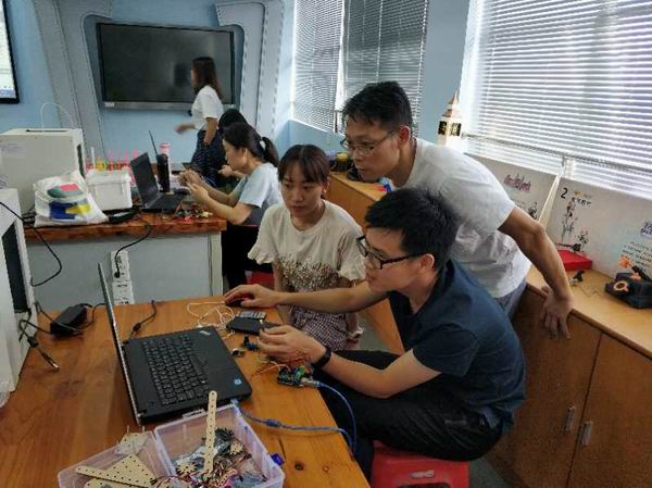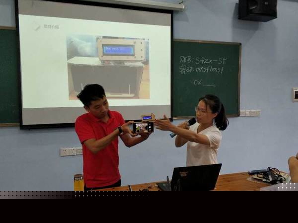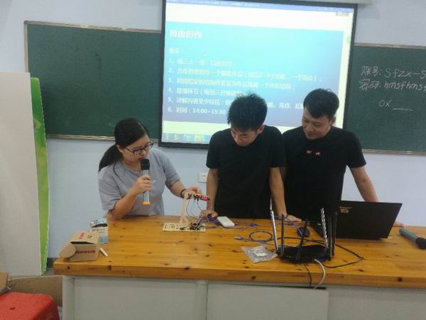 經(jīng)過一天的基礎(chǔ)知識學(xué)習(xí),第二天下午,分小組進(jìn)行項目制作和路演匯報。各個小組的老師都使出渾身解數(shù),把兩天培訓(xùn)中所學(xué)到的技術(shù)以及團(tuán)隊的創(chuàng)意發(fā)揮得淋漓盡致,在硬件有限的條件下實現(xiàn)各種有創(chuàng)意的創(chuàng)客作品,路演匯報環(huán)節(jié)精彩紛呈,充分展示了我區(qū)在創(chuàng)客教育的師資潛力。
