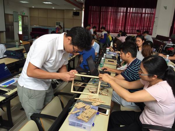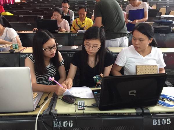 為提高區(qū)中小學(xué)開展創(chuàng)客教育的實施能力,培養(yǎng)優(yōu)秀創(chuàng)客教育教師,進(jìn)一步推進(jìn)創(chuàng)客教育在全區(qū)中小學(xué)的普及與開展,順德區(qū)教育發(fā)展中心舉辦了第二期創(chuàng)客教育種子教師培訓(xùn),分別于7月4、5日和10、11日在大良順峰中學(xué)和勒流職業(yè)技術(shù)學(xué)校開班,全區(qū)共有200多名中小學(xué)教師前來參與。培訓(xùn)的主要內(nèi)容是開源硬件和米思齊基礎(chǔ)入門。
