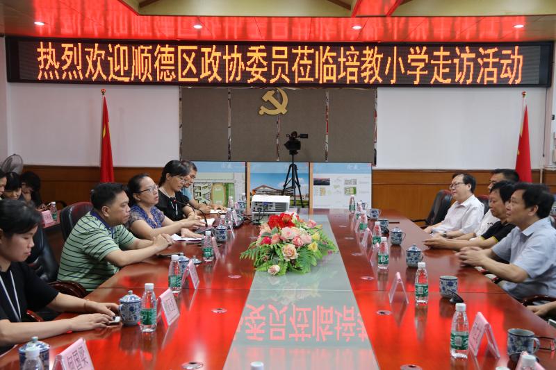 7月12日上午,順德區(qū)政協(xié)主席周文、副主席黃燕霞、李梓文、區(qū)政協(xié)專職常委和政協(xié)辦領(lǐng)導(dǎo)等12人組成的政協(xié)考察組一行,在倫教街道黨工委副書記王星海、黨工委委員黃炫丹等領(lǐng)導(dǎo)的陪同下來到培教小學(xué)參觀考察。培教小學(xué)歐陽艷冰校長帶領(lǐng)行政班子熱情接待。